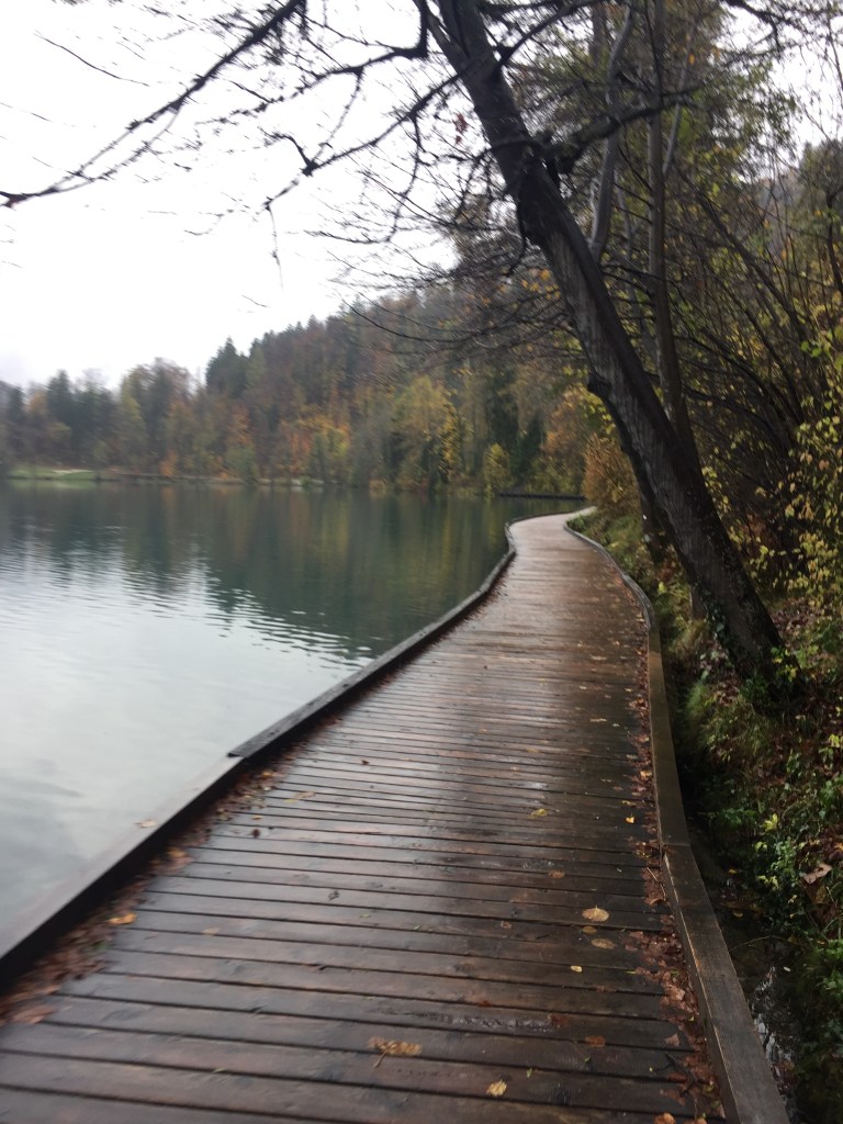I took a day trip to Lake Bled with a different girl I had met in Rome, Aarisha, who had seen on my Instagram Story that we were both in the same city. Bled is an incredible azure blue lake with a small island and a monastery in the middle of it. It takes about 3 hours to walk all around the lake, across paths that veer into forests and over docks, always within sight of the lake. We got lucky with the weather, and it only rained when we first arrived and towards the end of our walk. What was most incredible was that there was hardly anyone else there. A few runners and a fisherman were the extent of our interactions, and when we stopped for a coffee at the town at the opposite end of the lake a waiter told me that in the summer you have to walk in a single file around the path.